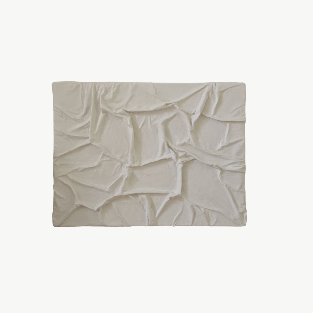 Sculptural 3D plaster artwork on canvas which adds a three-dimensional element to any space. Focusing on texture and depth, each artwork is original, handmade, one-of-a-kind, signed and dated.