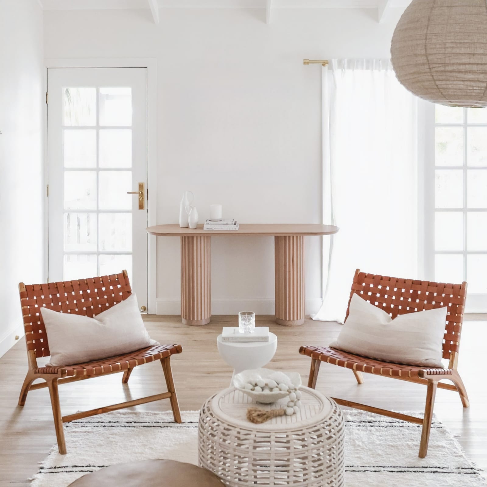 The Joni Armchair is a study in balance — architectural yet warm, structured yet inviting. Designed for those drawn to woven leather seating with enduring appeal, it combines handwoven leather straps with a solid timber frame, creating a lounge chair that feels timeless rather than trend-led.